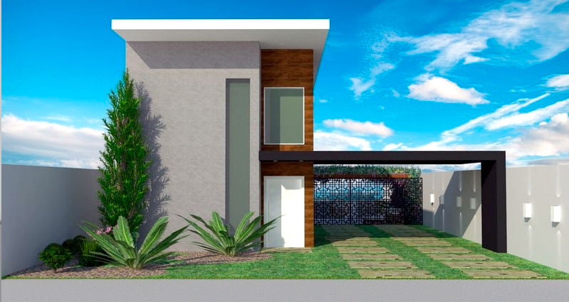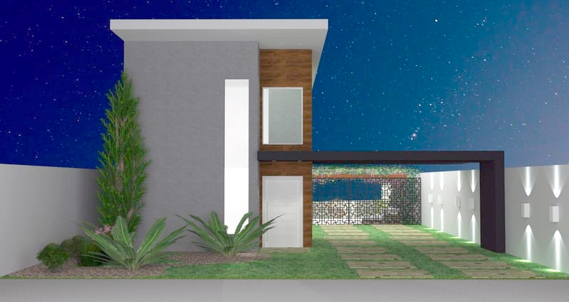 Remodelação de uma fachada. A residência não transmitia nenhuma identidade, apresentava uma fachada “sem graça”. A proposta foi remodelar criando proporção, jogo de luz e sombra.